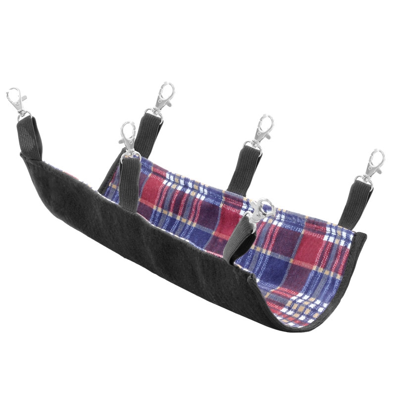 Гамак изготовлен из качественной фланелевой ткани с наполнением из прессованного синтепона, благодаря чему он мягкий, теплый и уютный. Изделие оборудовано шестью прочными карабинами, при помощи которых его можно зафиксировать в необходимом положении внутри клетки любых габаритов. В таком гамаке вашему любимцу будет максимально комфортно: он сможет скрыться от глаз и спокойно поспать в мягкой лежанке. Изделие легко стирается как вручную, так и с помощью стиральной машинки.