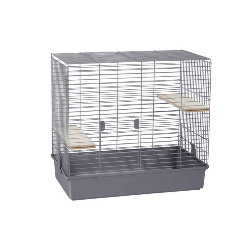 Высокая клетка для шиншилы. Две двери. В комплекте две деревянные полки. Изготовлено в Испании, с использованием эпоксидной краски без свинца и пластика, полипропилена, не токсична. Размер 70.00 x 40.00 x 65.00 см. Вес: 6,00кг. Цвет: серый.