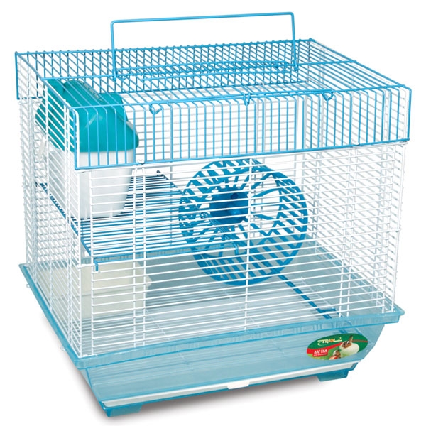 Эта двухэтажная клетка - удобный и функциональный дом для любого грызуна: он занимает совсем немного места и отлично подходит для мелких домашних животных вроде крыс, мышей и хомяков. В комплектацию изделия также входят: пластиковая миска, уютный домик на втором ярусе и беговое колесо. Кроме того, клетка оборудована удобной ручкой на крыше, облегчающей процесс переноски изделия. Размер изделия: 345х260х320мм.