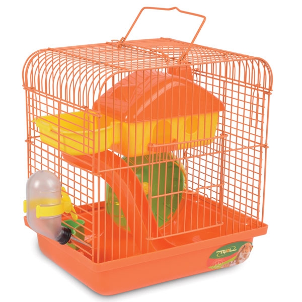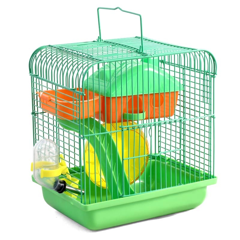 Складная компактная цветная клетка с прочным металлическим каркасом. Она не занимает много места и отлично подходит для мелких домашних животных вроде крыс, мышей и хомяков. В комплектацию изделия также входят: пластиковая миска, поилка с носиком, горка со второго яруса на первый, вместительный домик и беговое колесо. Клетка также оборудована специальным пластиковым наружным поддоном, облегчающим процесс уборки, а удобная ручка сверху максимально упрощает транспортировку изделия. Размер изделия: 225х170х250мм. Цвет: оранжевый, желтый, зеленый.