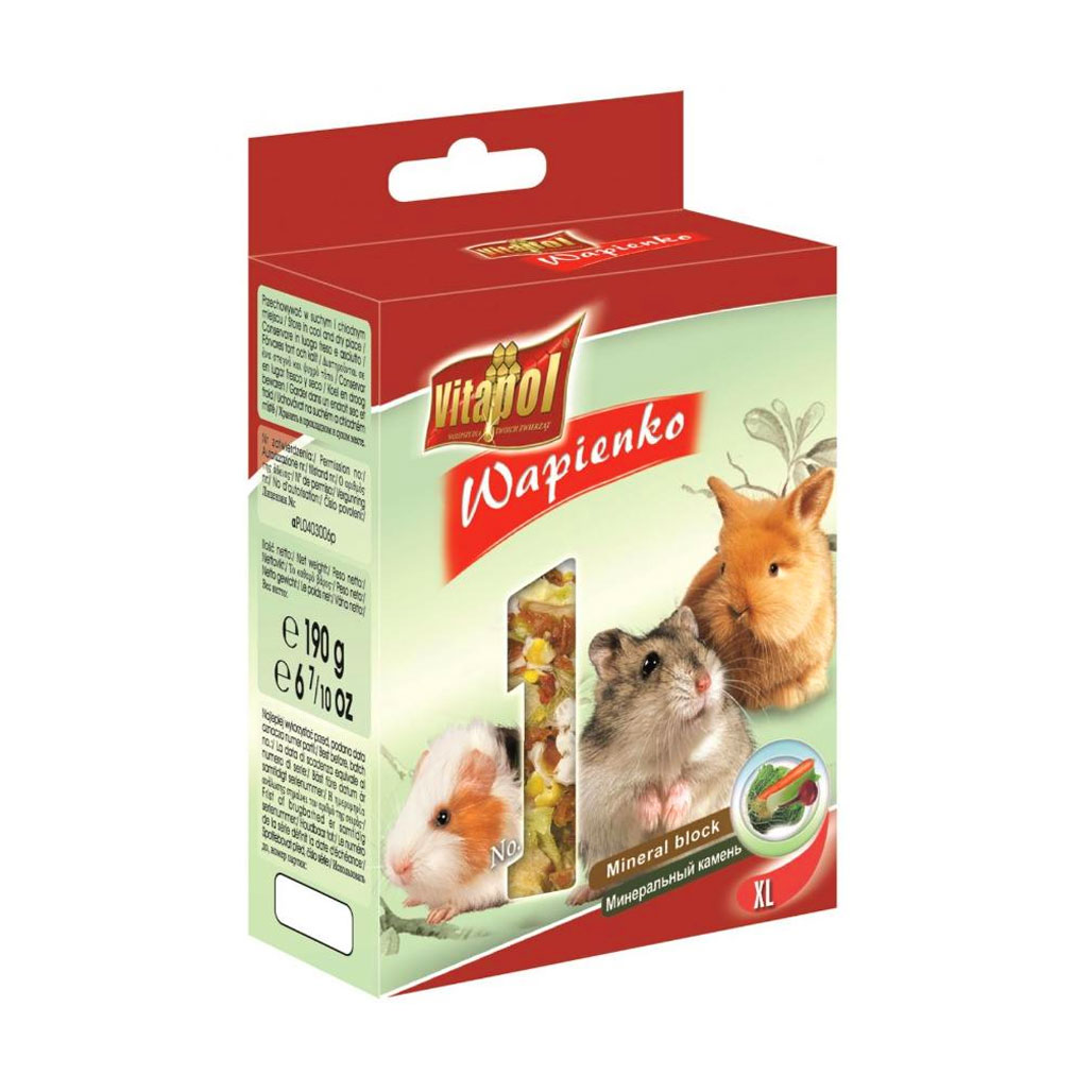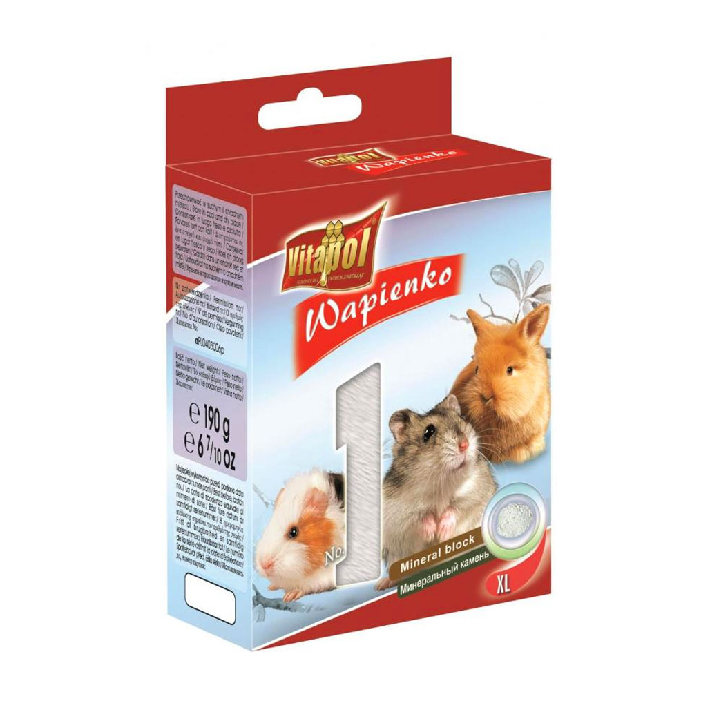 Минеральный камень от компании Vitapol для вашего грызуна. Камень изготовлен из натуральных компонентов. Вашему грызуну очень понравится такой камушек о который он будет точить свои зубки, и стачивать их, но и при этом будет насыщать свой организм витаминами и минералами. Он подойдет для употребления любому грызуну и изготовлен он в нужном размере. В нем также есть фосфор и кальций которые отлично влияют не только на состояние зубов, но и на развитие костей и их укрепление. Кроме того он очень легко крепится с помощью уже встроенного крепления. На клетке держится прочно и не оторвется если питомец будет интенсивно его грызть. Такой качественный камень позаботится о здоровье вашего любимца и его зубках.