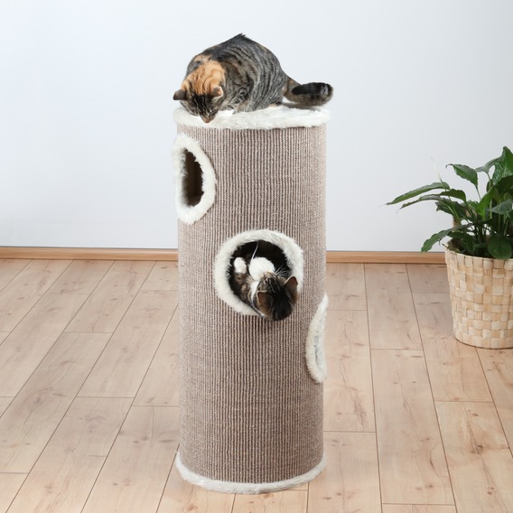 Домик-башня "TRIXIE",Edoardo, диам.40см/100см. • плюш с длинным ворсом/сизаль • 4 яруса • с мягкой платформой • с игрушкой на верёвочке • цвет: коричневый/кремовый