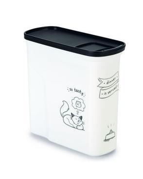 Удобный контейнер для хранения кошачьего корма. Имеет отверстие в верхней части, для насыпания корма в миску. Приятная деталь: с забавным принтом.