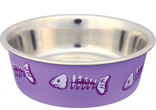 Миска "TRIXIE", металлическая, для кошек 0,25л/диам.12см, -пластиковое покрытие, -не скользит, благодаря резиновому основанию. -различные варианты расцветки с рисунком