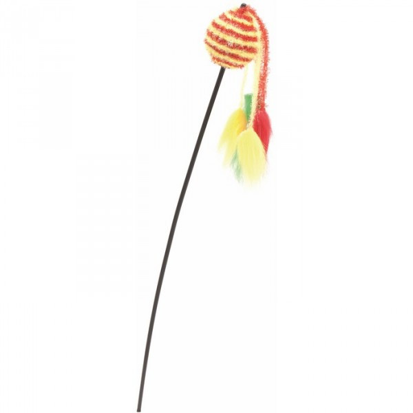 Удочка 40 см, изготовлена полностью из натуральных материалов: дерево и кукурузное волокно; для более удобной активной игры удочка имеет длинную веревку, чем помогает избежать царапин; внутри нее имеется маленький звонкий колокольчик, наверняка заинтересующий кошку.