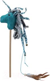 Дразнилка "TRIXIE", для кошек "Лошадь", полиэстер/дерево, 37 см. -с кисточками, колокольчиками и шелестящей внутри фольгой