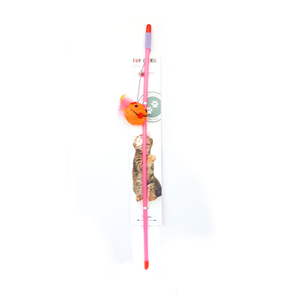 Представляет собой палочку из высокопрочного пластика с игрушкой в форме яркой смешной мордашки диаметром 4 см с прикрепленными к ней перьями на конце. Абсолютно безопасна для лап и зубов животного.