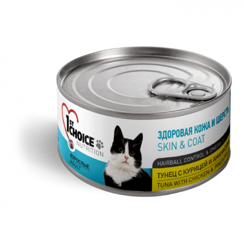 1ST CHOICE ТУНЕЦ С КУРИЦЕЙ И АНАНАСОМ консервы для кошек 85г