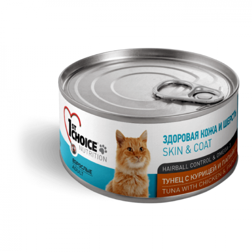 Консервы для кошек 1ST CHOICE ТУНЕЦ С КУРИЦЕЙ И ПАПАЙЕЙ 85г — это натуральное, здоровое и функциональное дополнительное консервированное питание для кошек, сделанное из высококачественного свежего мяса тунца (цельные кусочки трех видов) и свежего мяса цыпленка, приготовленных в овощном бульоне.