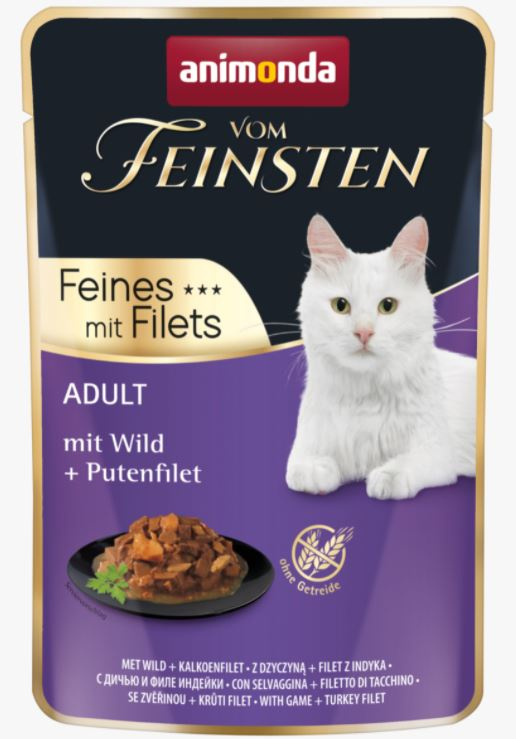 Vom Feinsten Adult - Feines mit Filets - это сбалансированное и вкусное здоровое питание в лучшем виде для взрослых кошек от 1 до 6 лет. Качество мясных сырых ингредиентов в нежных кусочках в сочетании с восхитительным соусом и лучшими кусочками филе гарантирует неповторимое наслаждение. Прекрасные рагу для гурманов обеспечивают взрослую кошку всеми необходимыми ей питательными веществами.