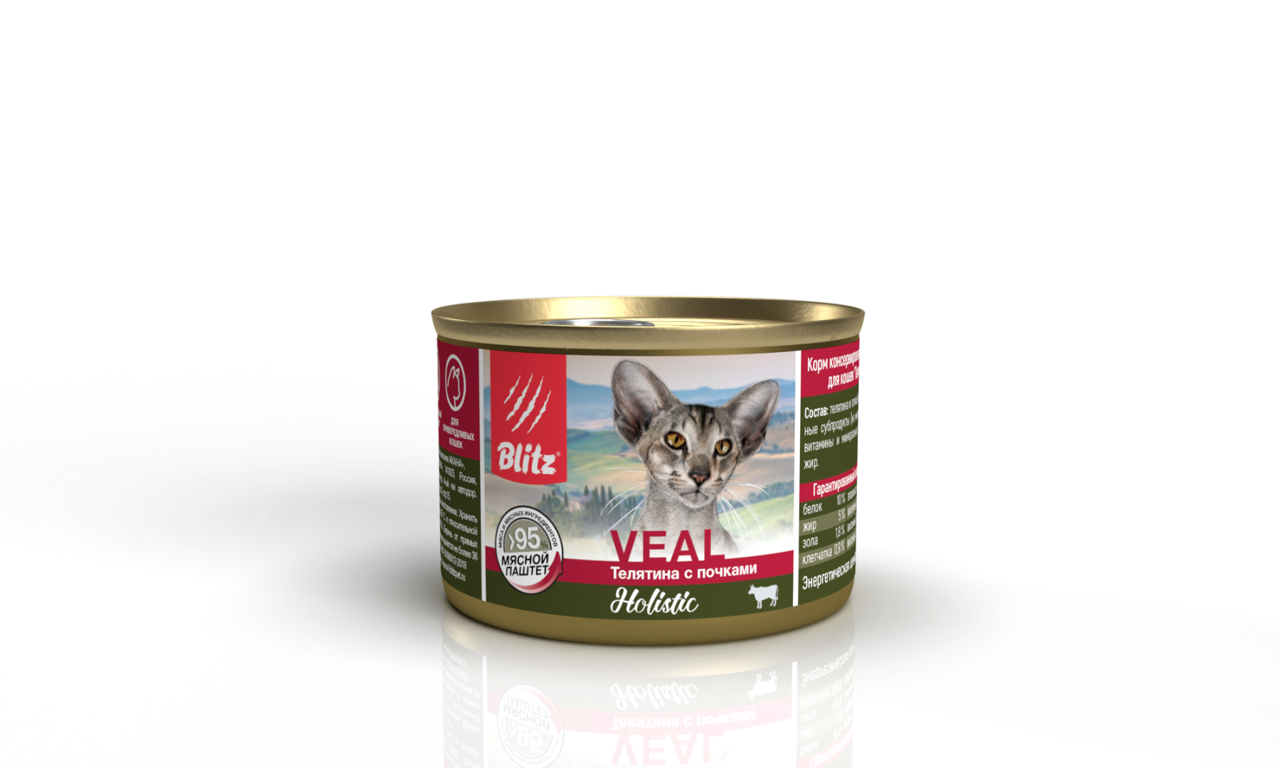 Мясной паштет Blitz Holistic «Теляна с почеками» – настоящее искушение для привередливых кошек. Его отличает богатый вкус, питательность и низкая калорийность, что подчеркивается подбором ингредиентов. Мясо молодых бычков содержит на треть больше белка, чем говядина, а субпродукты, как следствие, более ценнейших микро- и макроэлементов. Используйте телятины и короткие шнурки, чтобы обеспечить лучшее кроветворение животных.