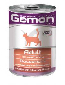 Gemon Консервы Cat Adult Salmon/Shrimps - это полноценный, сбалансированный влажный корм с кусочками лосося и креветок.
