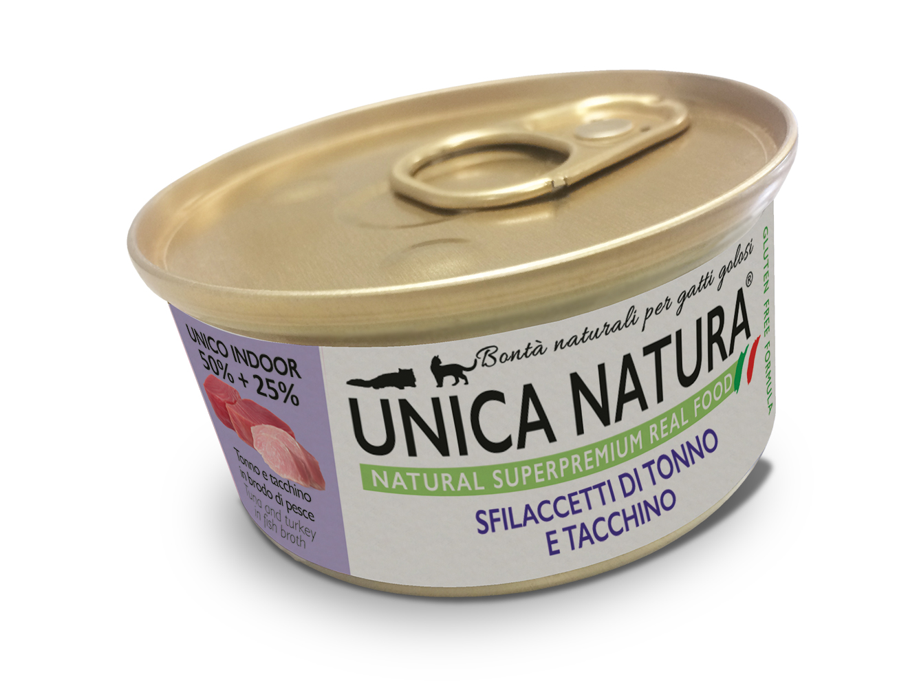 Влажный корм с тунцом и индейкой на рыбном бульоне без загустителей для котят.