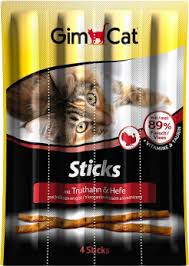Лакомство для кошек GIMBORN GimCat Sticks индейка и кролик 4 штуки - вкусное и полезное лакомство для Вашего питомца. Содержит Витамин D3, Витамин E, Таурин. Изготовлено без добавления зерновых продуктов. В упаковке у 4 палочки. Рекомендовано для взрослых кошек (старше 1 года).