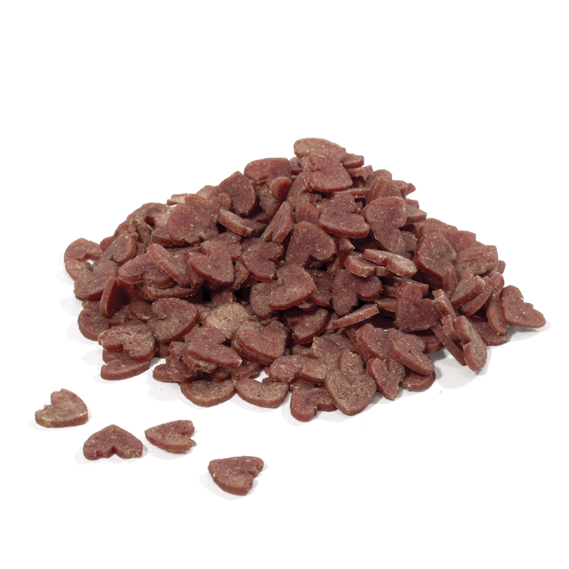 Мини-сердечки из кролика – это полезное угощение для здоровья вашего питомца, обогащенное общеукрепляющим комплексом витаминов А, Е и D3. Вес нетто 40г.