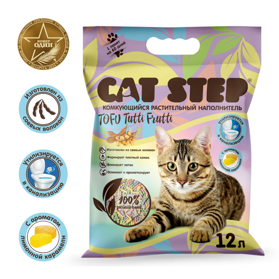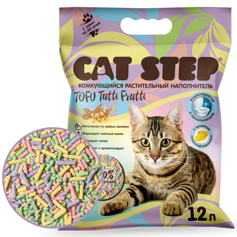 Растительные волокна, которые являются основой наполнителя CAT STEP Tofu Tutti Frutti, легко растворяются в воде, поэтому его можно смывать в канализацию без опасений.