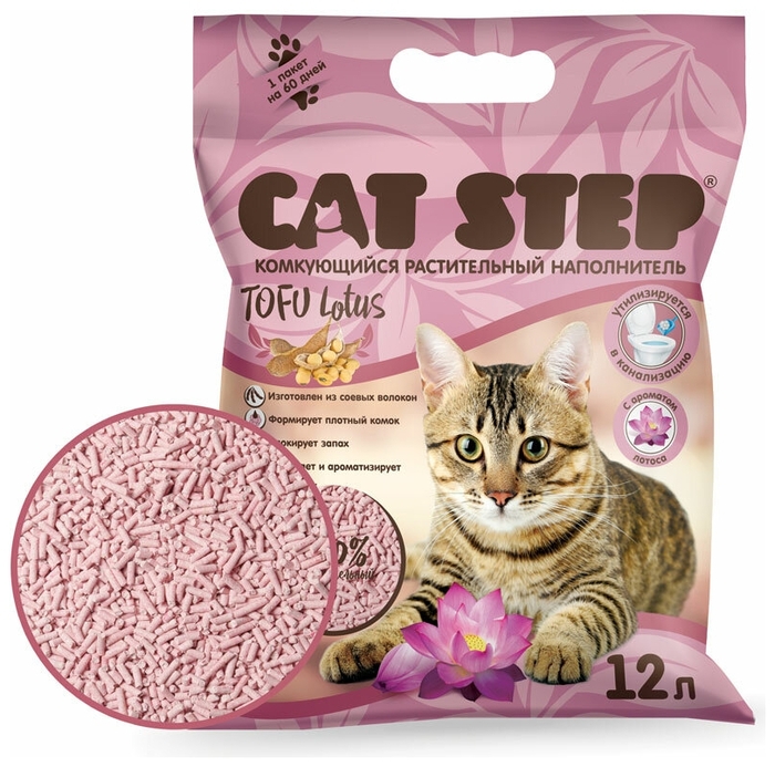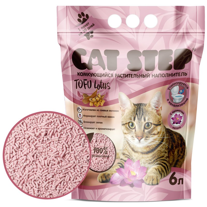 Благодаря волокнистой структуре при попадании жидкости соевые гранулы образуют плотный комок, который легко удалить из лотка. Жидкость, попадая на гранулы, не растекается, не застаивается, и запах блокируется внутри наполнителя. Экстракт лотоса придаёт изделию приятный лёгкий аромат, а оригинальный оттенок наделяет продукт особой эстетикой.