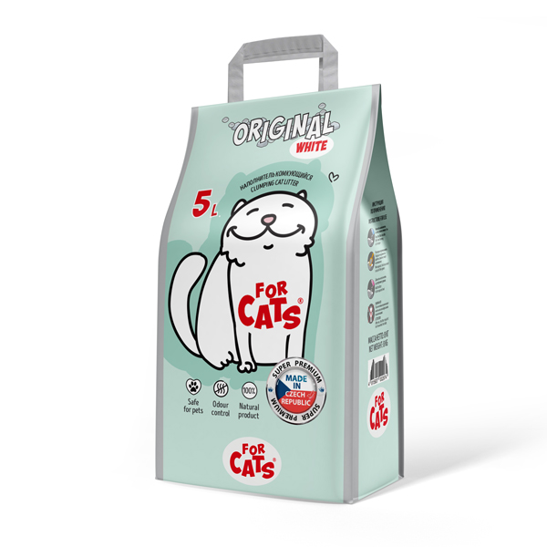 8.Не прилипает к лапам, подходит для длинношерстных кошек.Наполнитель комкующийся FOR CATS Original White 5л. (4 кг)Наполнитель изготовлен из природной белой бентонитовой глины, без запаха, при намокании образует твердые комки, которые легко убирать совком. Абсолютно нетоксичен, а потому безопасен для животных. Прекрасно поглощает влагу и не позволяет бактериям распространяться. Упаковки хватает на длительный период за счет высокой экономичности продукта. - Отзывы покупателей