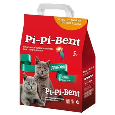 Натуральный комкующийся наполнитель Pi-Pi-Bent Для котят специально создан для приучения котят к лотку: изготовлен из бентонитовой глины особой мелкой фракции, которая не ранит нежные лапки котят.