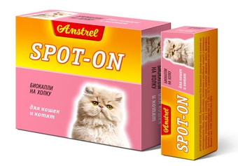 Антипаразитарные биокапли АМСТРЕЛЬ СПОТ-ОН применяют кошкам и котятам с 4-х недельного возраста. Подходят для беременных и кормящих самок. Препарат применяют путем капельного нанесения на сухую неповрежденную кожу. Раздвинув шерсть, препарат выдавливают в несколько точек на кожу животного в области шеи, у основания черепа или между лопатками (в места, недоступные для слизывания животным).