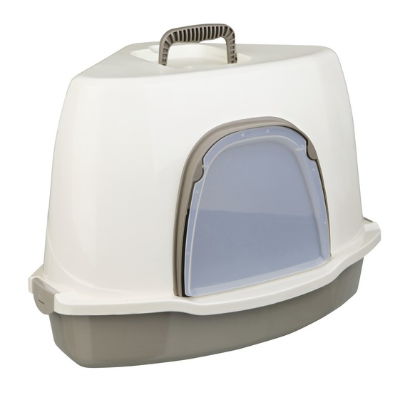 Туалет "TRIXIE" для кошек " Alvaro", угловой,со съемной крышей, дверью и ручкой ,серый/кремовый, 55х42х42/42см -двойной бортик предотвращает высыпание наполнителя из лотка -легко и быстро открывается и закрывается с помощью зажимов