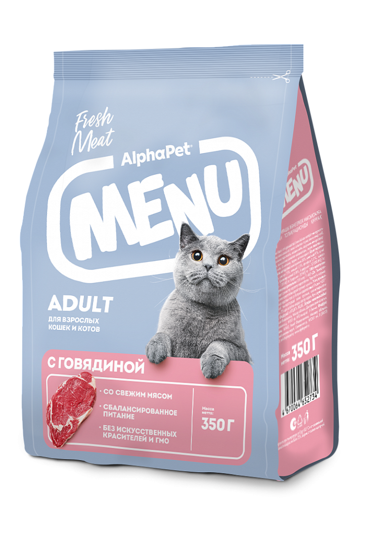 AlphaPet MENU / Сухой полнорационный корм с говядиной для взрослых кошек и котов