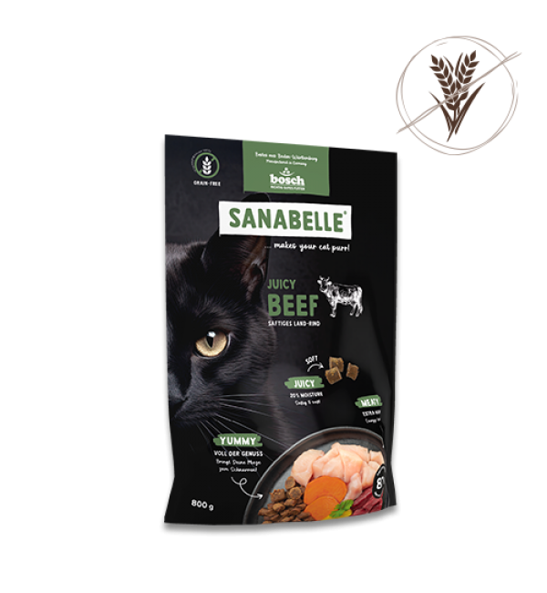 Sanabelle Juicy Beef – Столько мяса. Столько вкуса. Столько удовольствия в миске вашей кошки.