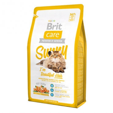 BRIT Care Cat «Sunny Beautiful Hair» - гипоаллергеннный корм с мясом лосося и рисом для взрослых кошек, шерсть которых требует дополнительного ухода