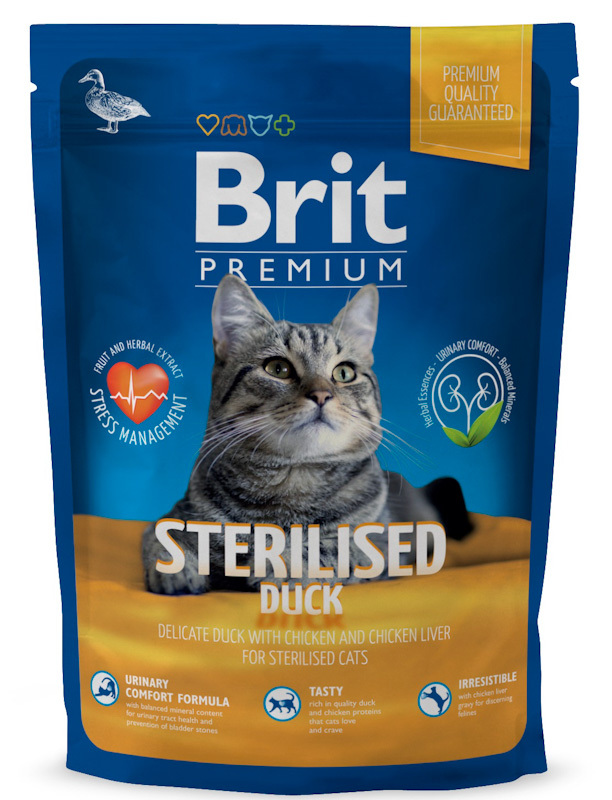 Brit Premium Sterilised Duck. Полнорационный сухой корм премиум класса с уткой и курицей для взрослых стерилизованных кошек.