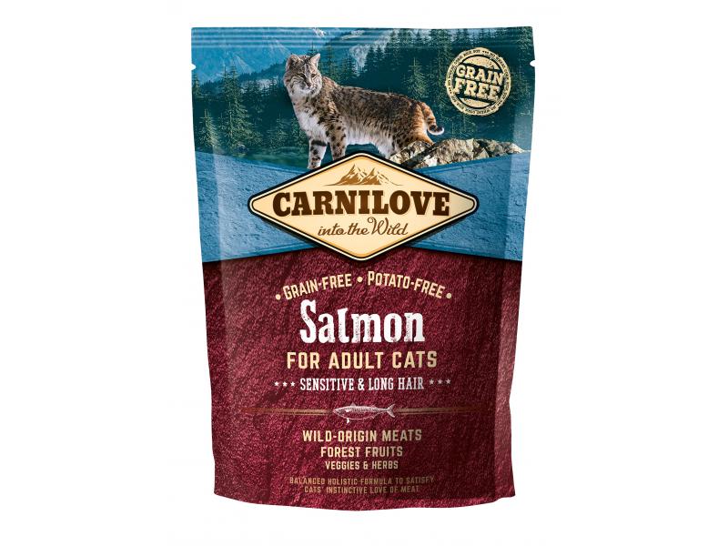 Carnilove Salmon for Adult Cats Sensitive&Long Hair - это полнорационный беззерновой корм с лососем для взрослых кошек.