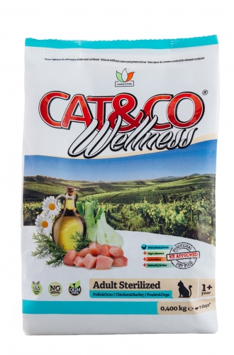 дегидрированные животные белки (цыплёнок 22%); рис; ячмень (12%); картофельный белок; кукурузный глютен; животный жир; свекольная пульпа; пивные дрожжи; льняное семя; мука гороховая; растительное волокно; масло подсолнечного масла (1%); фруктоолигосахарид (FOS); целлюлоза цикория; рыбий жир; экстракт дерева юкки; сушеный розмарин (Rosmarinus officinalis L.) (0,1%); обезвоженный фенхель (Foeniculum vulgare Mill) (0,1%); сухие цветы ромашки (Matricaria recutita L.) (0,04%).