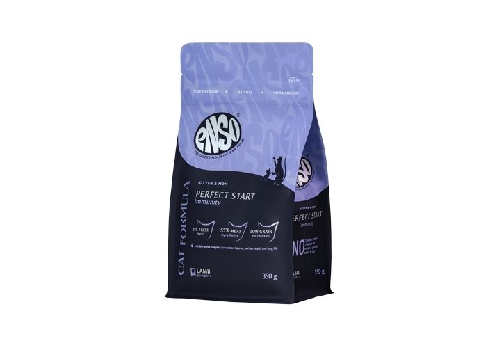 ENSO Cat Formula Perfect start – сухой полнорационный корм для котят от 1 месяца, беременных и кормящих кошек со свежим ягненком с добавлением тыквы.
