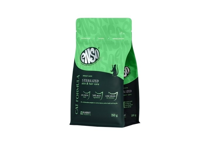 ENSO Cat Formula Sterilized – сухой полнорационный корм для стерилизованных кошек со свежим кроликом с добавлением малины.