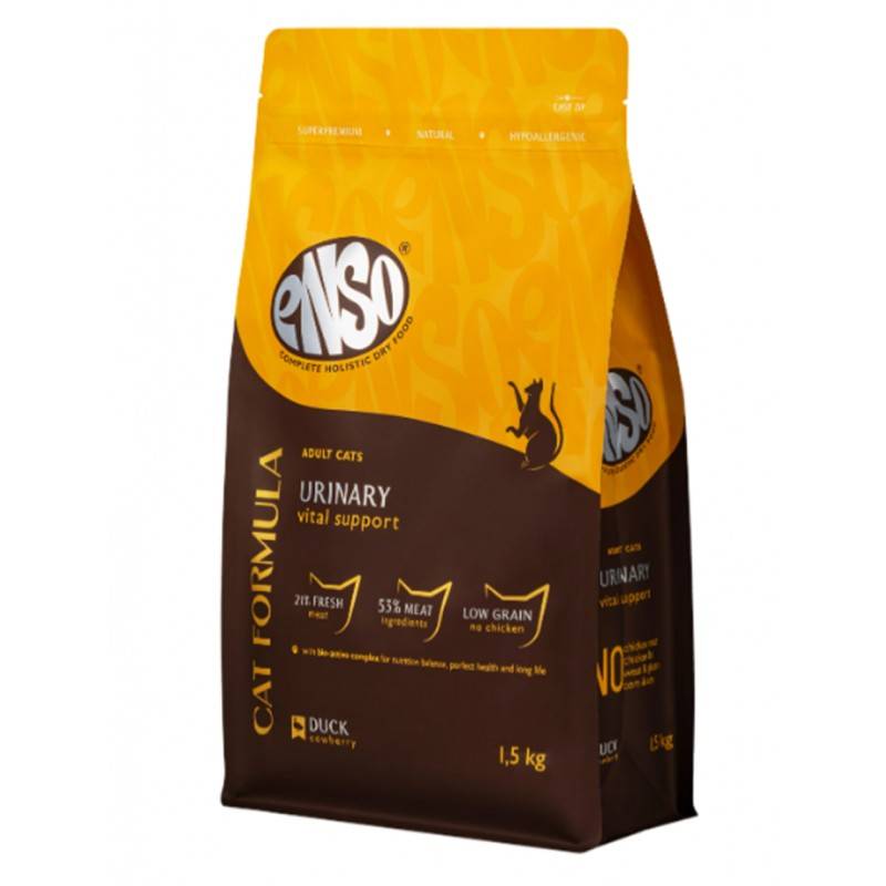 ENSO Cat Formula Urinary – сухой полнорационный корм для взрослых кошек для профилактики мочекаменной болезни кошек со свежей уткой с добавлением брусники.