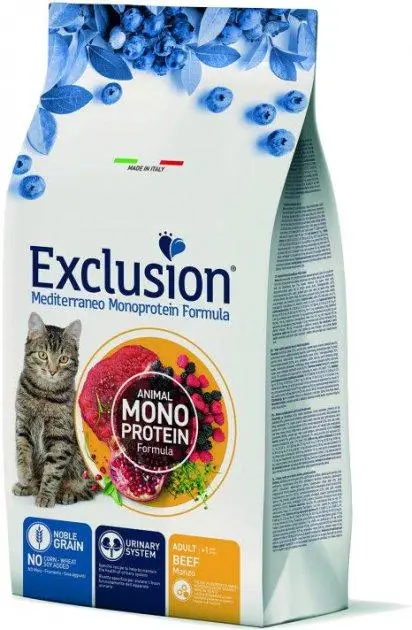Монопротеиновый рацион на основе белка животного происхождения с говядиной для взрослых кошек всех пород от 12 месяцев Exclusion Mediterraneo Monoprotein Formula – полнорационный сбалансированный корм на основе высококачественного зерна и дегидрированного монопротеина животного происхождения. Специально разработанная формула содержит только натуральные антиоксиданты и обеспечивает здоровье мочевыделительной системы. Корм создан в лучших средиземноморских традициях и включает гранат, ежевику, малину и чернику. Рецептура обогащена псилиумом, препятствующим образованию комочков шерсти в пищеварительном тракте.