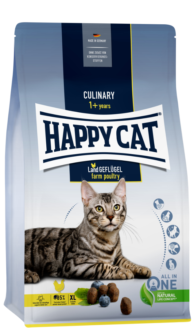 Белок птицы** (25,0%), кукурузная мука, кукуруза, рисовая мука, животный жир (включая птицу), картофельные хлопья, мясная мука, белок баранины*, гемоглобин, подсолнечное масло (2,4%), лигноцеллюлоза, гидролизат рыбы*, свекольный жом* (без сахара), рапсовое масло (0,6%), сушеное цельное яйцо, хлорид калия, яблочная выжимка* (0,4%), дрожжи*, хлорид натрия, морские водоросли, льняное семя (0,16%), порошок цикория (0,15% = 0,1% инулин), малина (0,1%), черника (0,1%), бузина (0,1%), облепиха (0,1%), мясо мидий* (0,05%), дрожжи* (экстракт, 0,02% = 0,0032% MOS), расторопша, артишок, одуванчик (0,013%), имбирь, береза, крапива, ромашка, кориандр, розмарин, шалфей, корень солодки, тимьян (всего сушеных трав 0,16%). *) высушенный, **) высушенный, частично гидролизованный.
