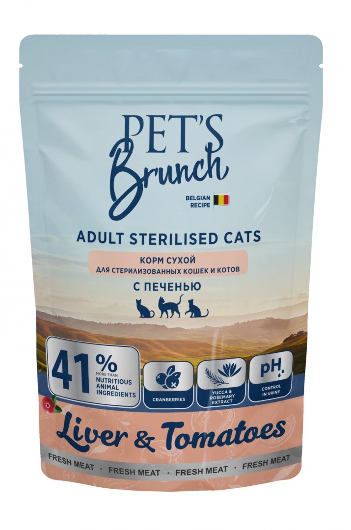 пециально разработанная формула сухого корма «Pet’s Brunch» учитывает необходимые изменения в питании стерилизованных кошек и котов. Сбалансированный уровень минералов и наличие в составе корма сушёной клюквы снижают риски образования камней в мочевой системе. Оптимальное соотношение белков, жиров и углеводов обеспечивает здоровый метаболизм и контроль веса. Комплекс витаминов и антиоксидантов поддерживает иммунитет организма стерилизованных кошек и котов.