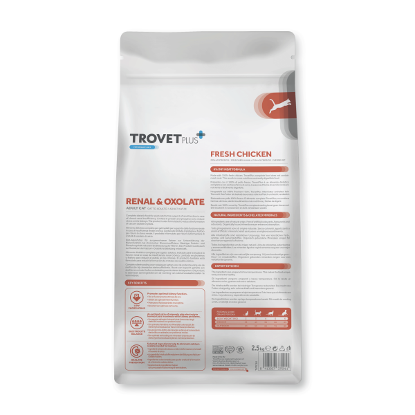 Полноценный диетический корм для взрослых кошек для поддержки функции почек при хронической почечной недостаточности. Продукт также разработан для уменьшения образования кристаллов оксалата кальция.