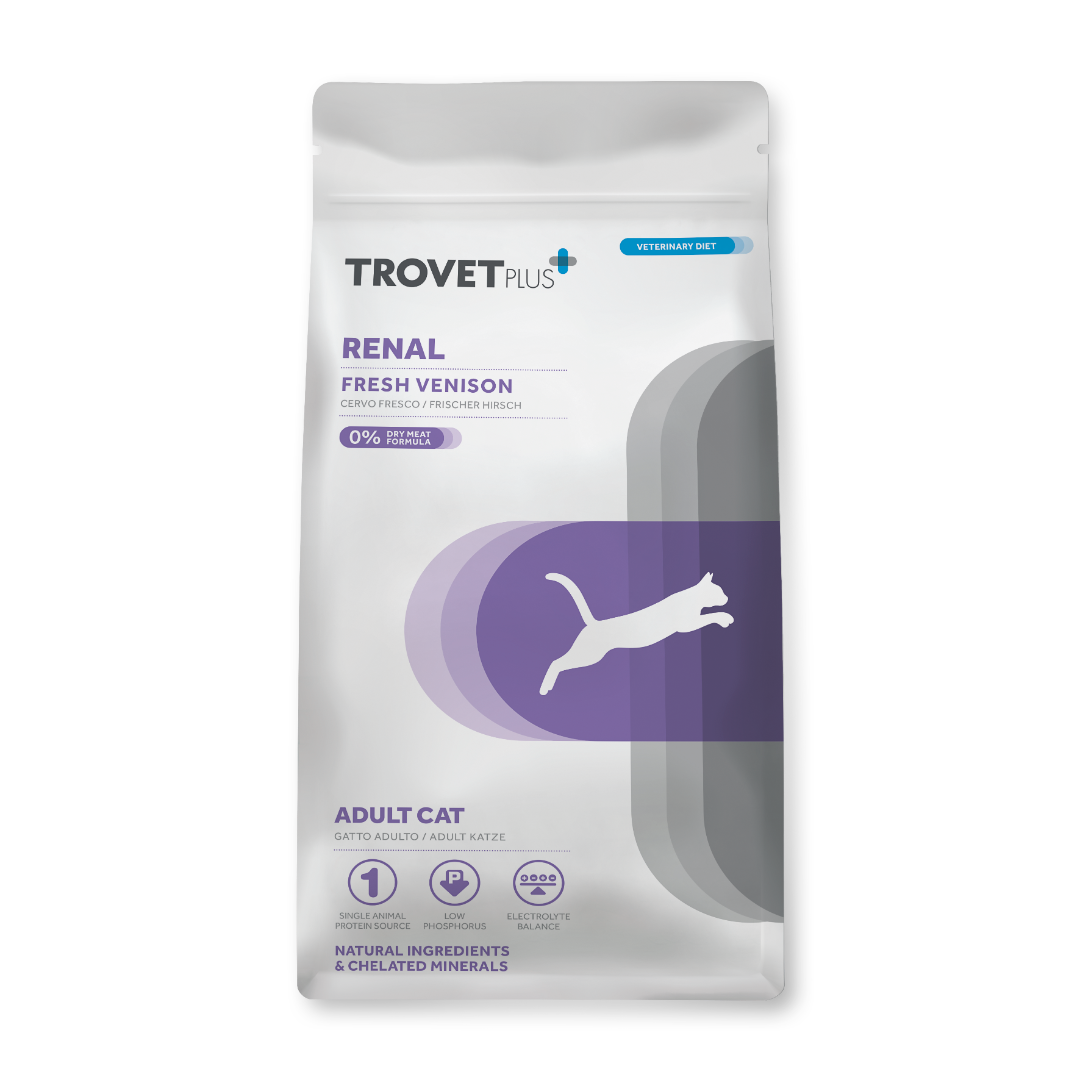 Полноценный диетический корм для взрослых кошек для поддержки функции почек при хронической почечной недостаточности и снижения непереносимости ингредиентов и питательных веществ.