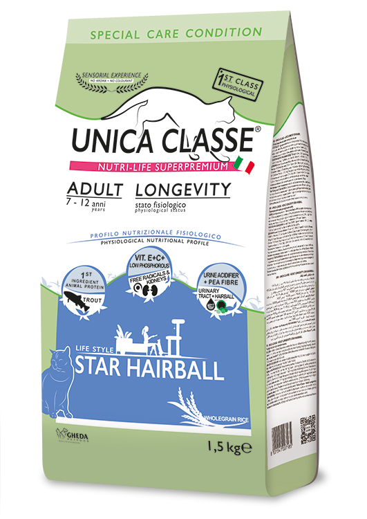Корм Unica Classe Adult Longevity Star Hairball Trout - Уника Классе для взрослых кошек с форелью
