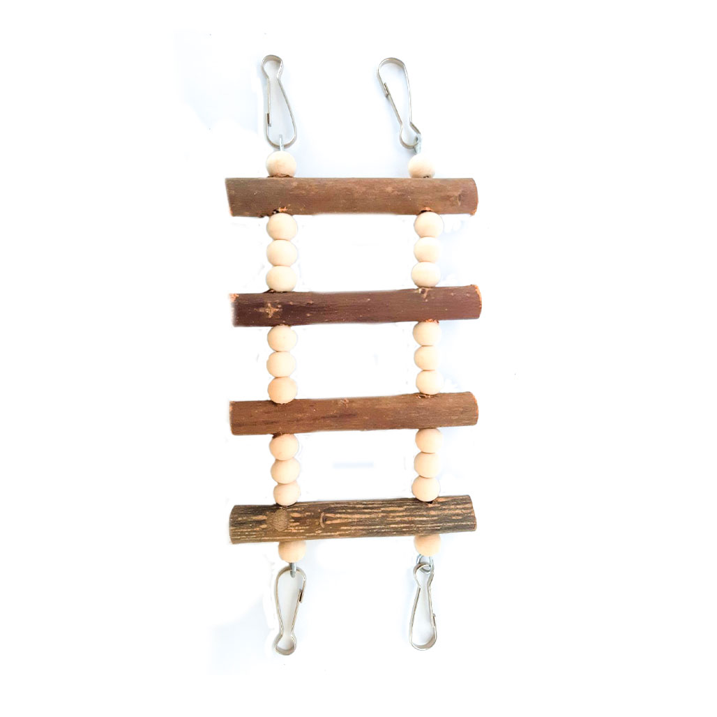 Подвесная игрушка для птиц в виде деревянной ступеньки. Крепится к клетке в четырех точках с помощью специальных карабинов. Выступает в роли необходимого тренажера, который способствует развитию двигательной активности птицы и тренировке различных частей тела. Изготовлена из высокопрочных нетоксичных материалов безопасных для здоровья птицы.