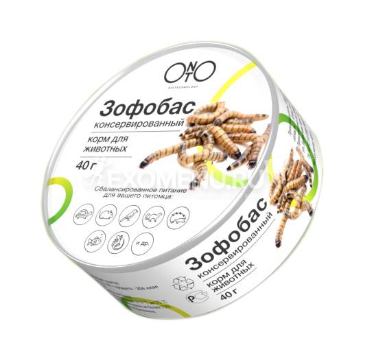 Зофобас консервированный ONTO (Zophobas morio), 40гр. Зофобас наиболее жирный и калорийный, содержит среднее кол-во углеводов. Подходит для енотов, ежей, рептилий, птиц, грызунов, млекопитающих и рыб, а также других насекомоядных животных.