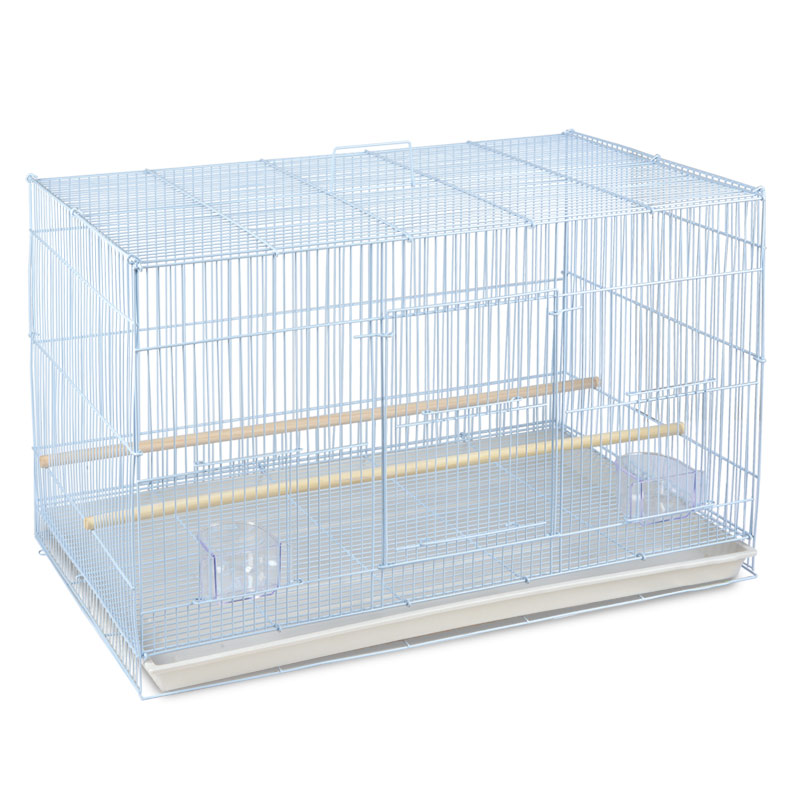Эмалированная клетка для птиц прямоугольной формы - полезный аксессуар для владельцев пернатых питомцев. Надежная, просторная и очень удобная, такая клетка займет достойное место в любом интерьере, отвечая всем жизненным потребностям домашних любимцев. В комплектацию изделия входят 2 пластиковые кормушки и 2 деревянные жердочки. Клетка оборудована удобной ручкой для переноски и специальным пластиковым наружным поддоном, облегчающим процесс уборки. Размер изделия: 760х460х455мм. Цвет в ассортименте.