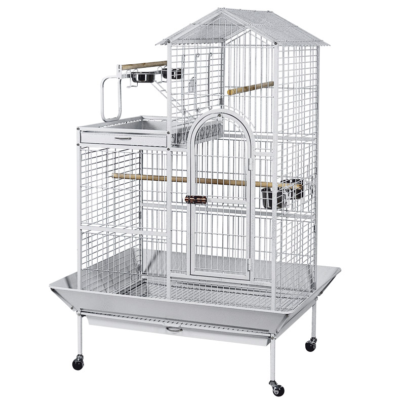 Прочная, эффектная и функциональная стальная клетка на колесах, предназначенная для птиц и попугаев крупных размеров. Ее эмалированные прутья не гнутся, не облупляются и не гремят. Клетка имеет большую удобную дверцу, надежно запирающуюся на плотный замок, а за счет дополнительной внешней конструкции выгуливать птиц можно прямо на крыше изделия. Такая клетка займет достойное место в любом интерьере, отвечая всем жизненным потребностям пернатых питомцев. Клетка также оборудована специальным выдвижным поддоном, облегчающим процесс уборки. Цвет: белый. Размер изделия: 1140х910х1600мм.