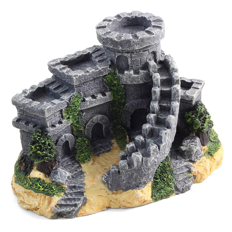 Этот максимально реалистичный грот, стилизованный под средневековый рыцарский замок - незаменимый элемент для оригинального оформления любых пресноводных аквариумов, особенно с песчаным грунтом. Особенность грота - в имитации песчаной косы, на которой стоит замок. Такой грот может быть использован как самостоятельный элемент декора - для оформления небольшого аквариума, так и в комплекте с другими гротами, объемными фонами и искусственными растениями - для оформления аквариума большого объема. Изготовленный из нетоксичной полиэфирной смолы, очень прочный и долговечный, удобный в эксплуатации и совершенно безвредный для аквариумных жителей, этот грот прослужит вам долгие годы, украшая собой ваш "компактный подводный мир" - на радость вам и его обитателям.