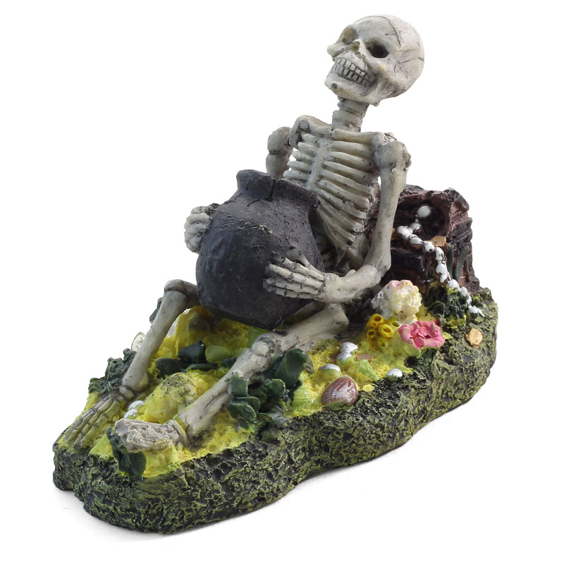 Этот функциональный и максимально реалистичный грот в виде скелета с кувшином - незаменимый элемент для оригинального оформления любых пресноводных аквариумов. Под давлением пузырьков воздуха скелет периодически подносит ко рту кувшин. Грот имеет выход для подключения аэрационного шланга диаметром 4-6мм. При подключении через шланг компрессора этот грот послужит в качестве распылителя, отвечая тем самым не только за эстетику, но и принося обитателям аквариума реальную пользу. Такой грот может быть использован как самостоятельный элемент декора - для оформления небольшого аквариума, так и в комплекте с другими гротами, объемными фонами и искусственными растениями - для оформления аквариума большого объема. Изготовленный из нетоксичной полиэфирной смолы, очень прочный и долговечный, удобный в эксплуатации и совершенно безвредный для аквариумных жителей, этот грот прослужит вам долгие годы, украшая собой ваш "компактный подводный мир" - на радость вам и его обитателям.