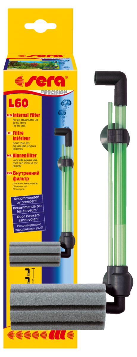 Аэрлифтный фильтр, фильтр с губкой работающий от воздушного компрессора. Эти фильтры идеальны для установки в аквариумах, используемых для разведения рыб и подращивания мальков, которые по причине их малого размера и неспособности противостоять сильному течению были бы затянуты потоком воды и погибли бы в аквариумах с обычными (на базе роторных насосов) фильтрами. Обьем до 60л.