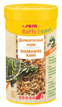 Кормовая смесь с гаммарусом для рептилий и амфибий. Бережно приготовленная смесь из натуральных компонентов – идеальный корм для плотоядных рептилий и амфибий. Корм богат натуральными минеральными и балластными веществами и содержит более 4% кальция – основы для здорового роста костей и панциря. Идеальное дополнение к sera raffy P, sera raffy Mineral и sera reptil Professional Carnivor.