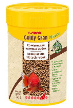 sera голди гран Nature – это основной корм, состоящий из мягко изготовленных гранул без красителей и консервантов для крупных золотых рыбок и других привередливых холодноводных рыб.