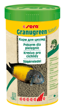 sera гранугрин Nature – это основной корм, состоящий из мягко изготовленных гранул без красителей и консервантов для небольших цихлид, которые в основном питаются растениями и перифитоном. Это многие восточноафриканские виды цихлид.